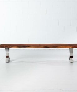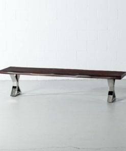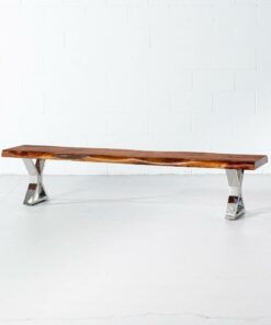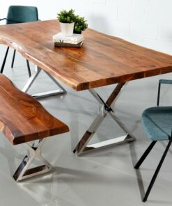 Acacia Live Edge Wood Bench with Chrome X-shaped legs/Honey Walnut