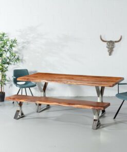 Acacia Live Edge Wood Bench with Chrome X-shaped Legs/Natural Finish