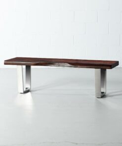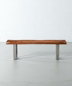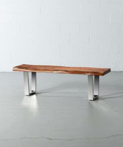 Acacia Live Edge Wood Bench with Chrome U-shaped Legs/Natural Finish