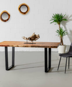Acacia Natural Wood Live Edge Table with Black U-Shaped Legs/Natural Color