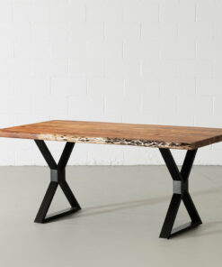 Acacia Live Edge Dining Table with Black X Shaped Legs/Natural Color