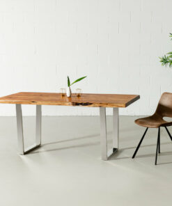 Acacia Live Edge Wood Table with Chrome U Legs/Natural Color