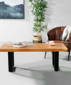 Acacia Natural Live Edge Wood Coffee Table with Black U Shaped Legs